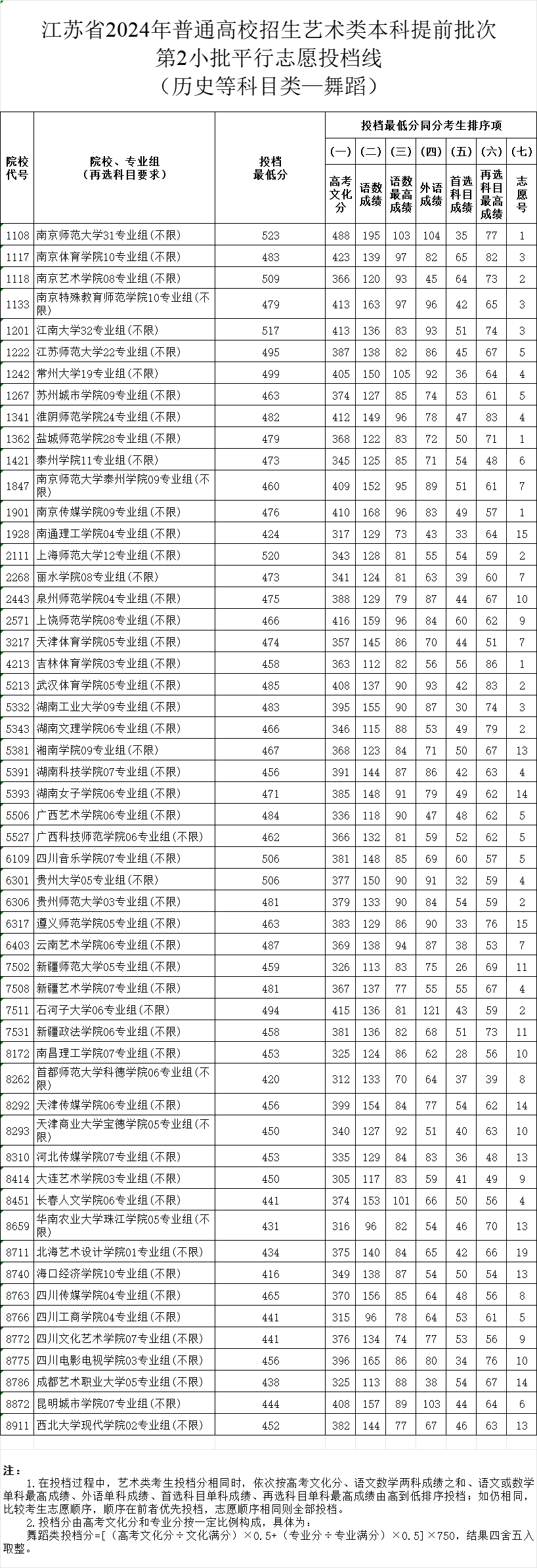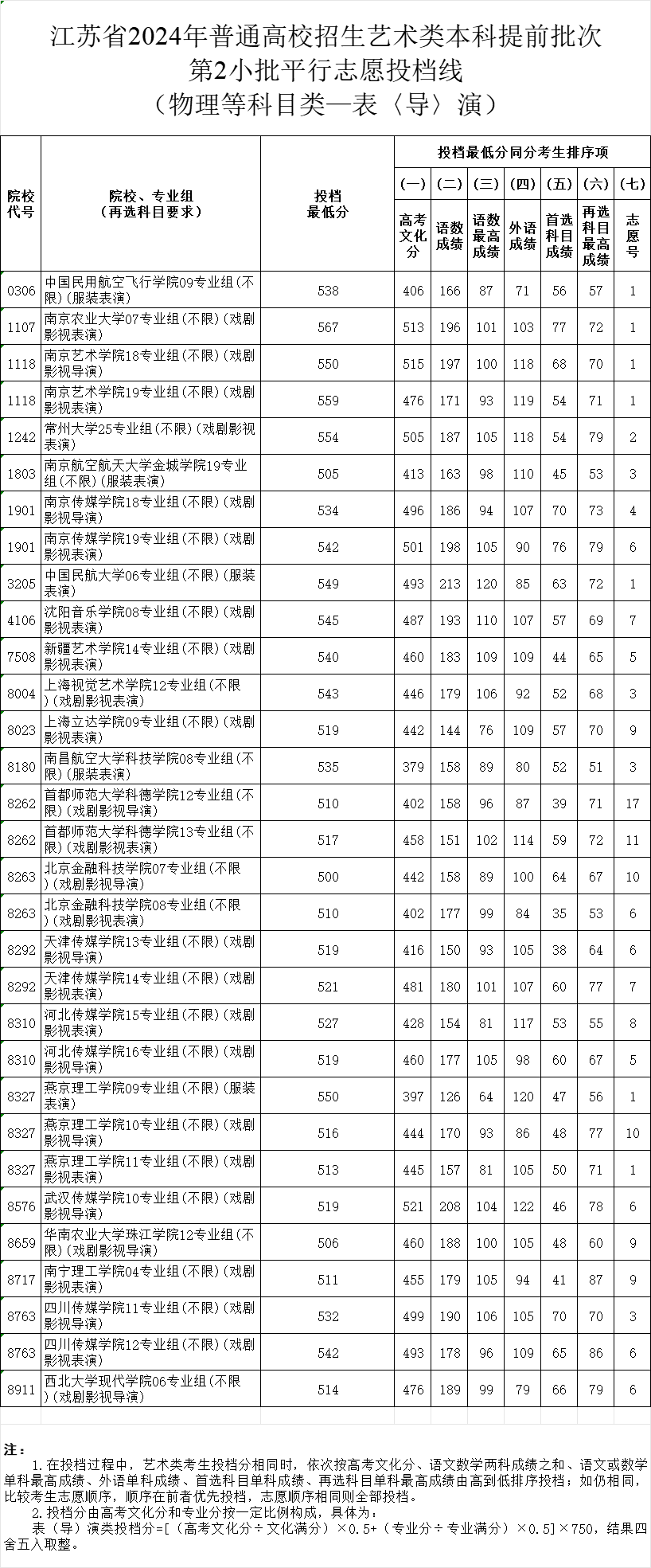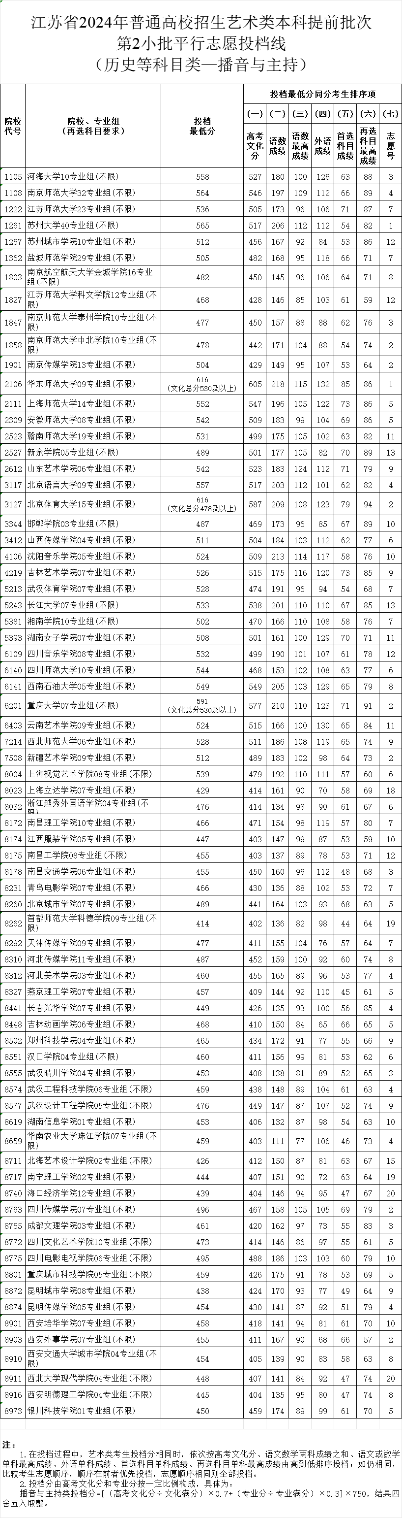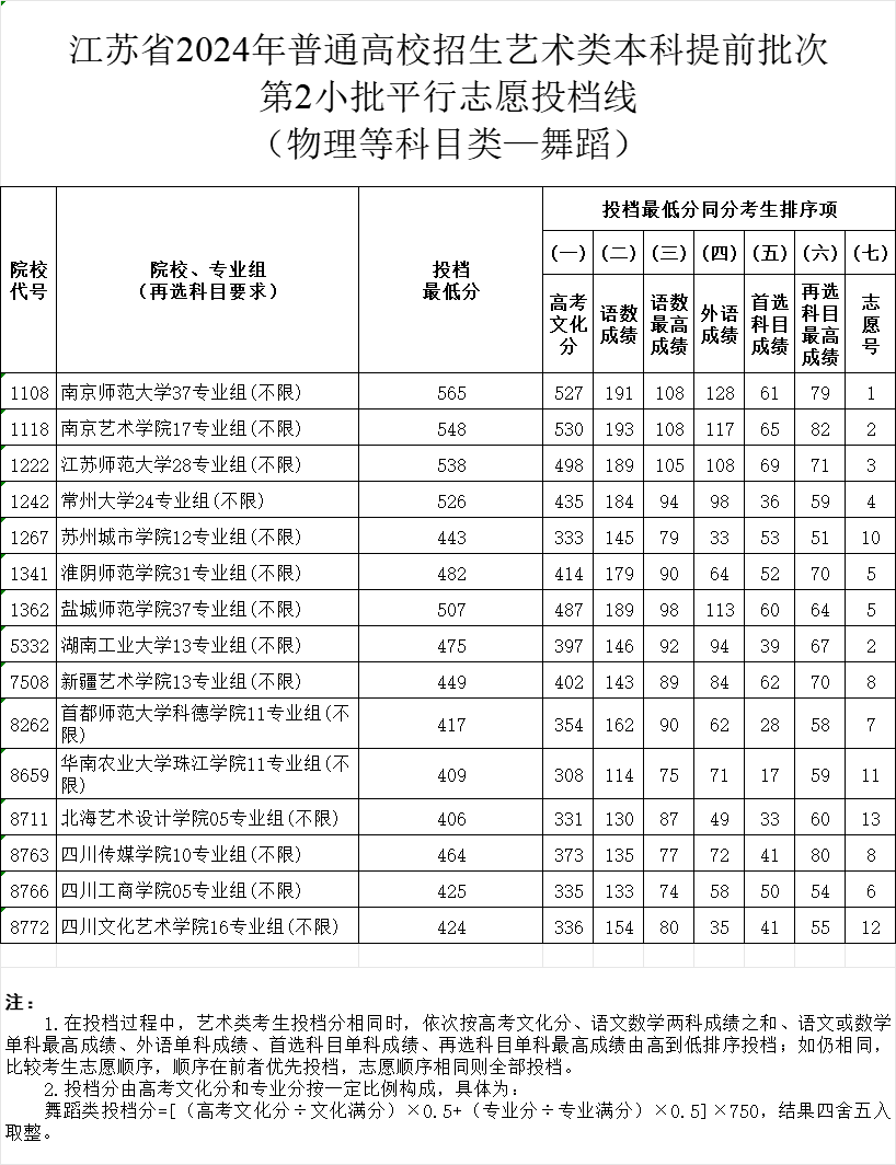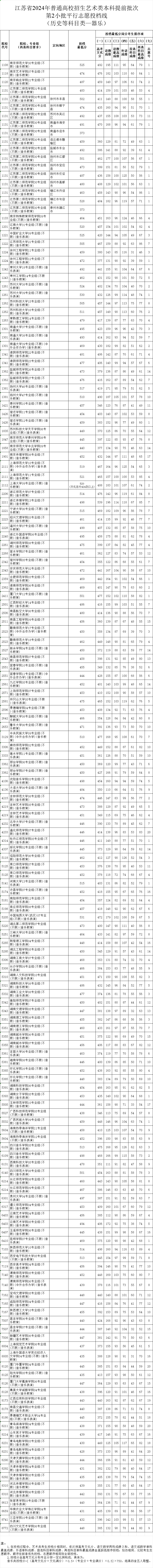 江苏2024年艺术提前批第二批志愿投档线