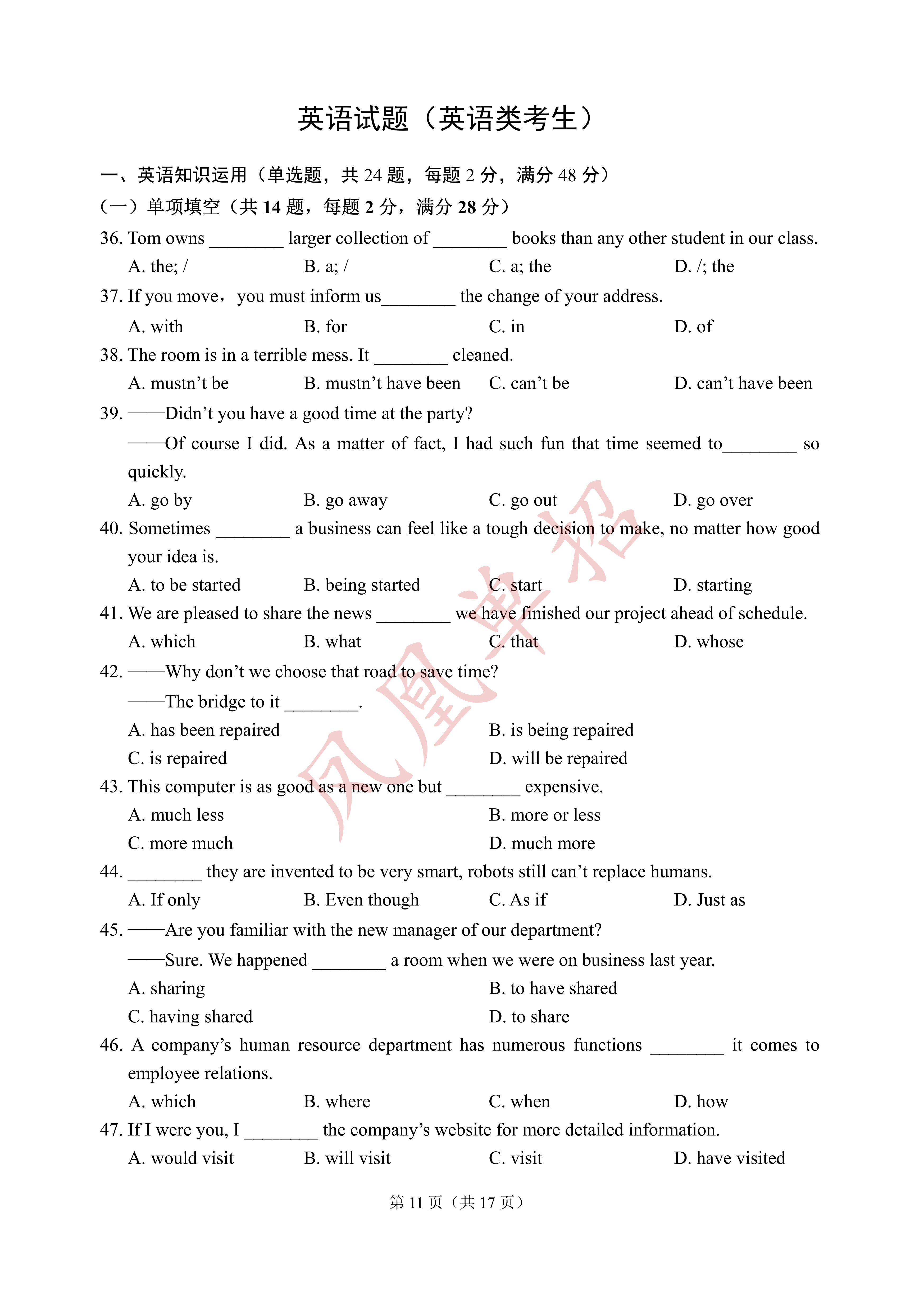 领取24年南铁单招试卷